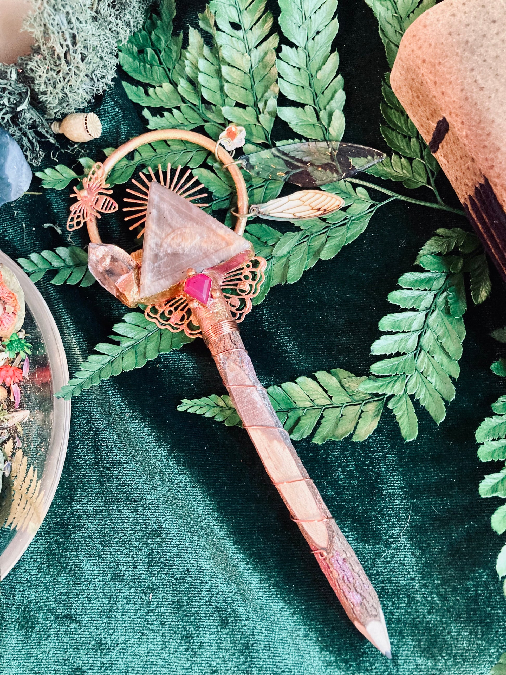 Transform your writing and artwork into magical creations with the Pencil wand. These unique and one-of-a-kind pencils not only write with precision, but also double as beautiful copper plated pendants. Use them in your journal or sketchbook for a touch of authentic elegance and inspiration.