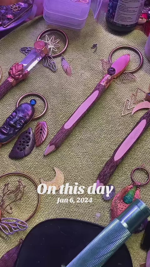 Transform your writing and artwork into magical creations with the Pencil wand. These unique and one-of-a-kind pencils not only write with precision, but some double as beautiful copper plated pendants. Use them in your journal or sketchbook for a touch of authentic elegance and inspiration.