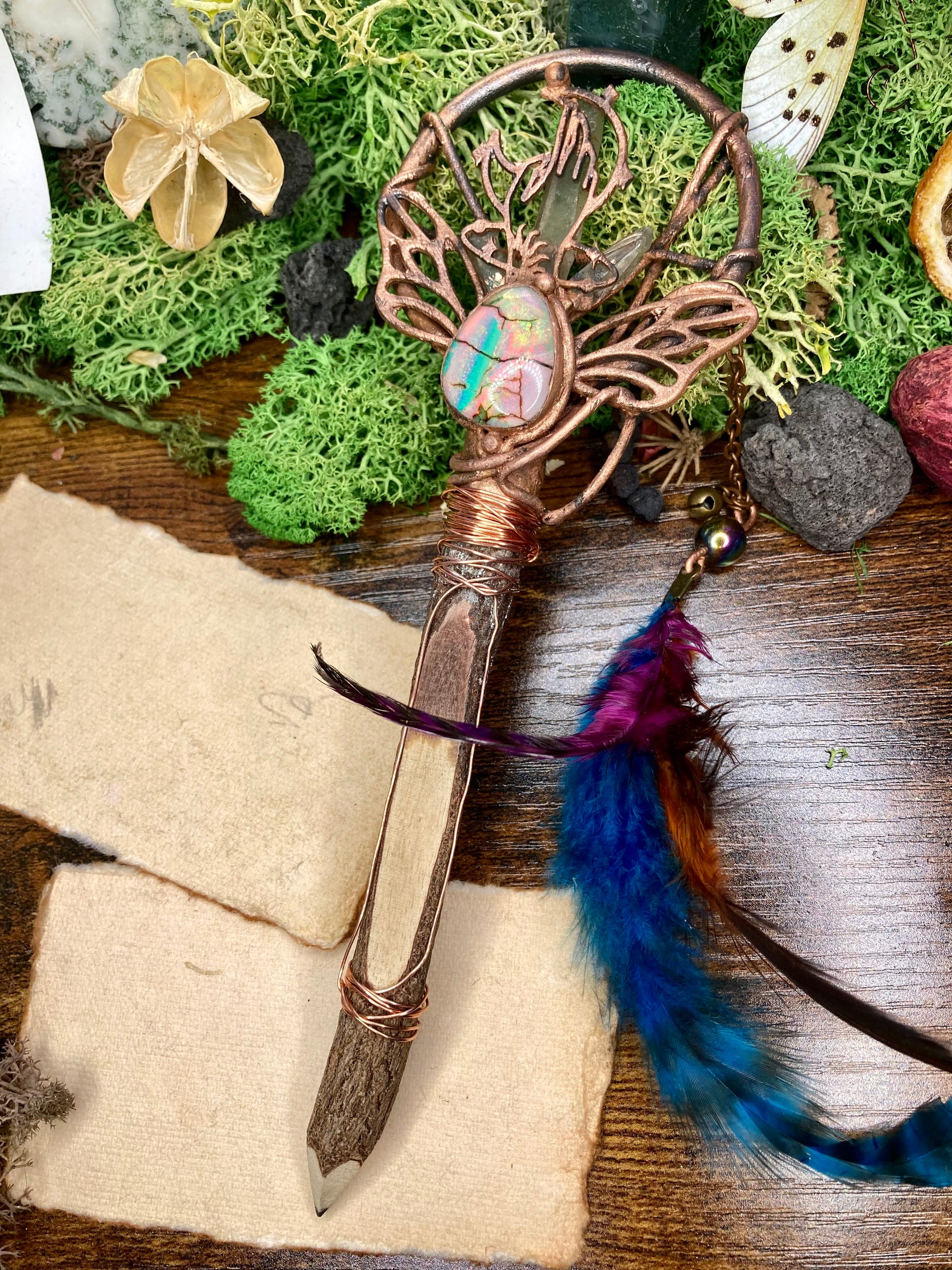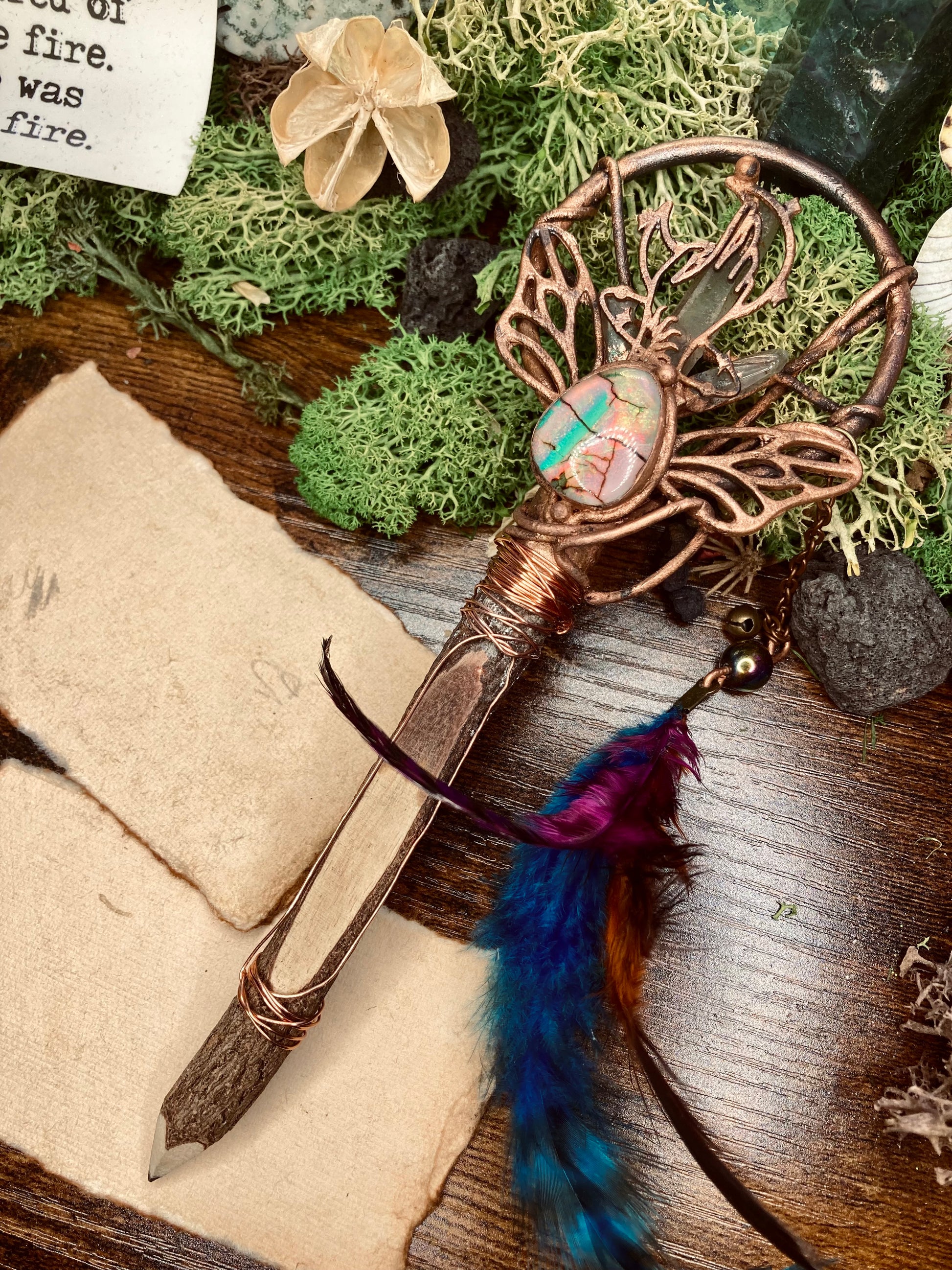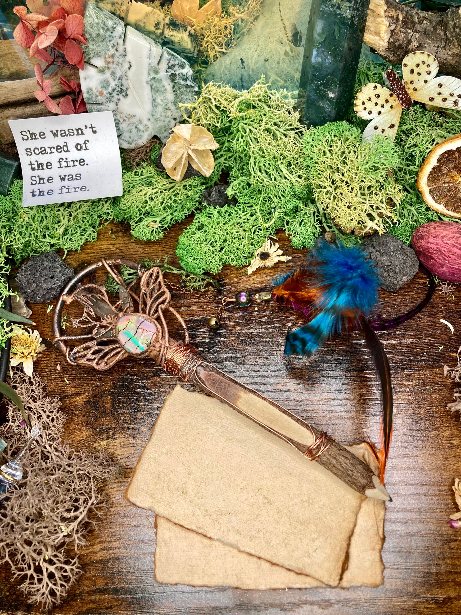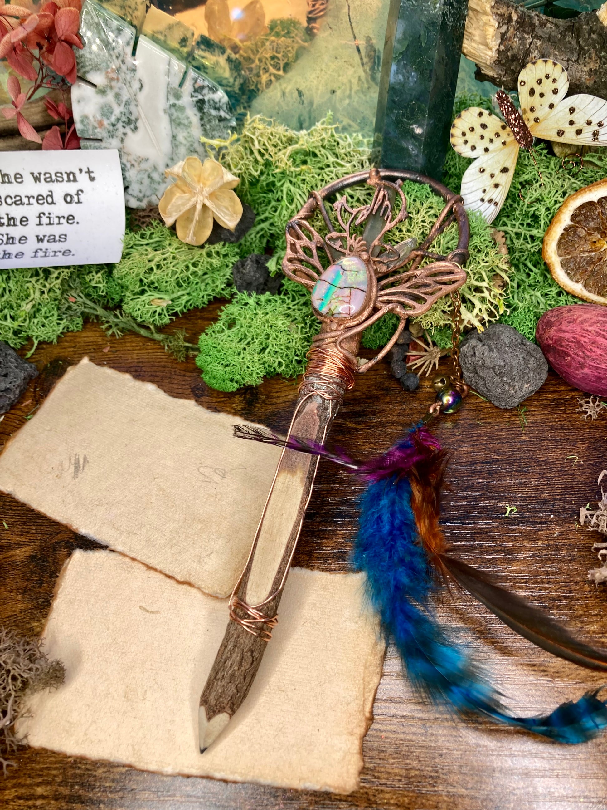 Transform your writing and artwork into magical creations with the Pencil wand. These unique and one-of-a-kind pencils not only write with precision, but also double as beautiful copper plated pendants. Use them in your journal or sketchbook for a touch of authentic elegance and inspiration.