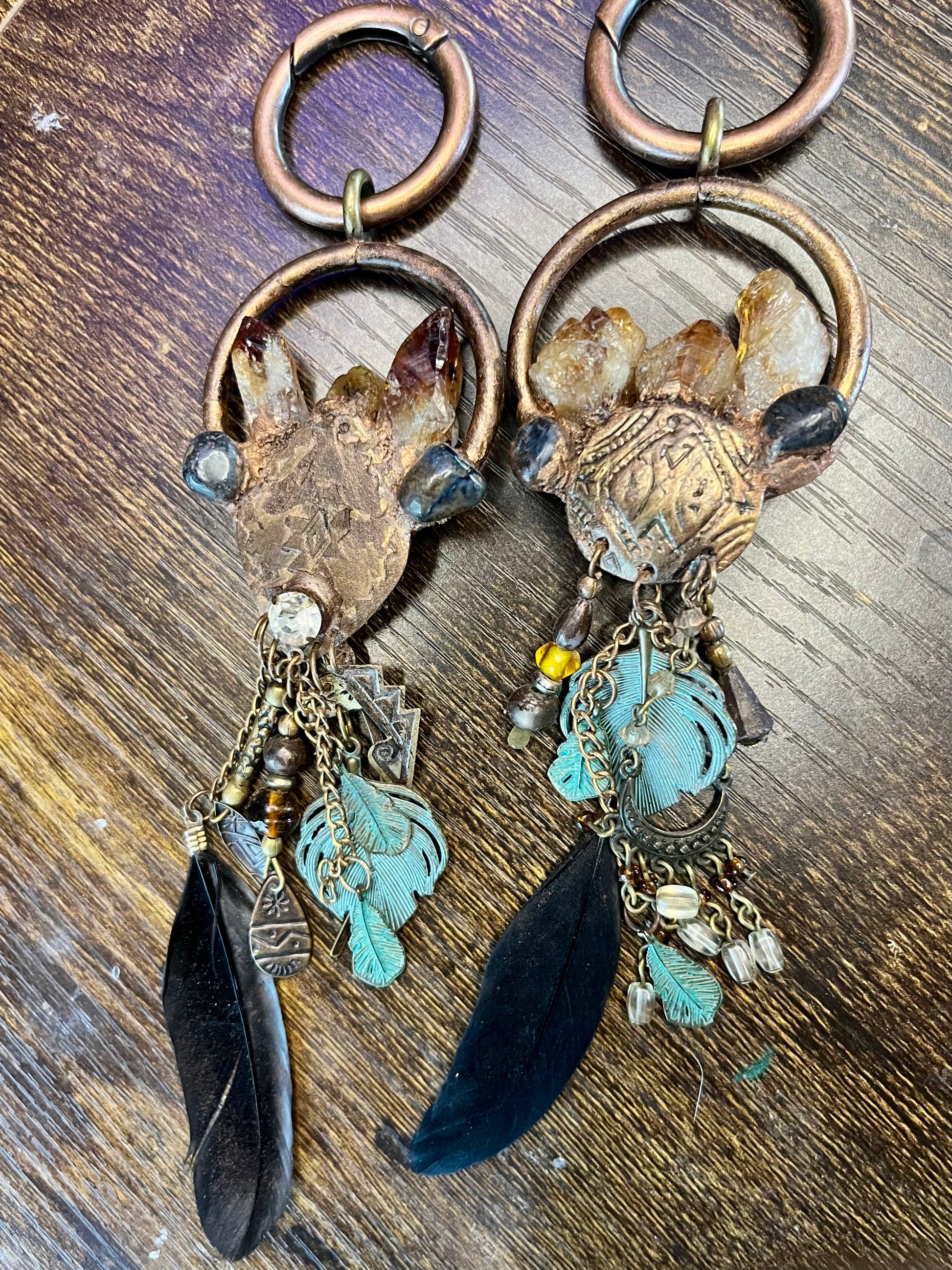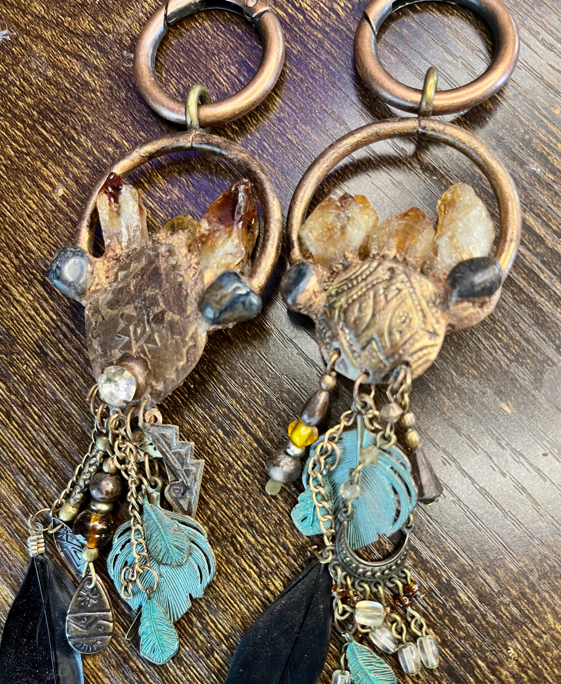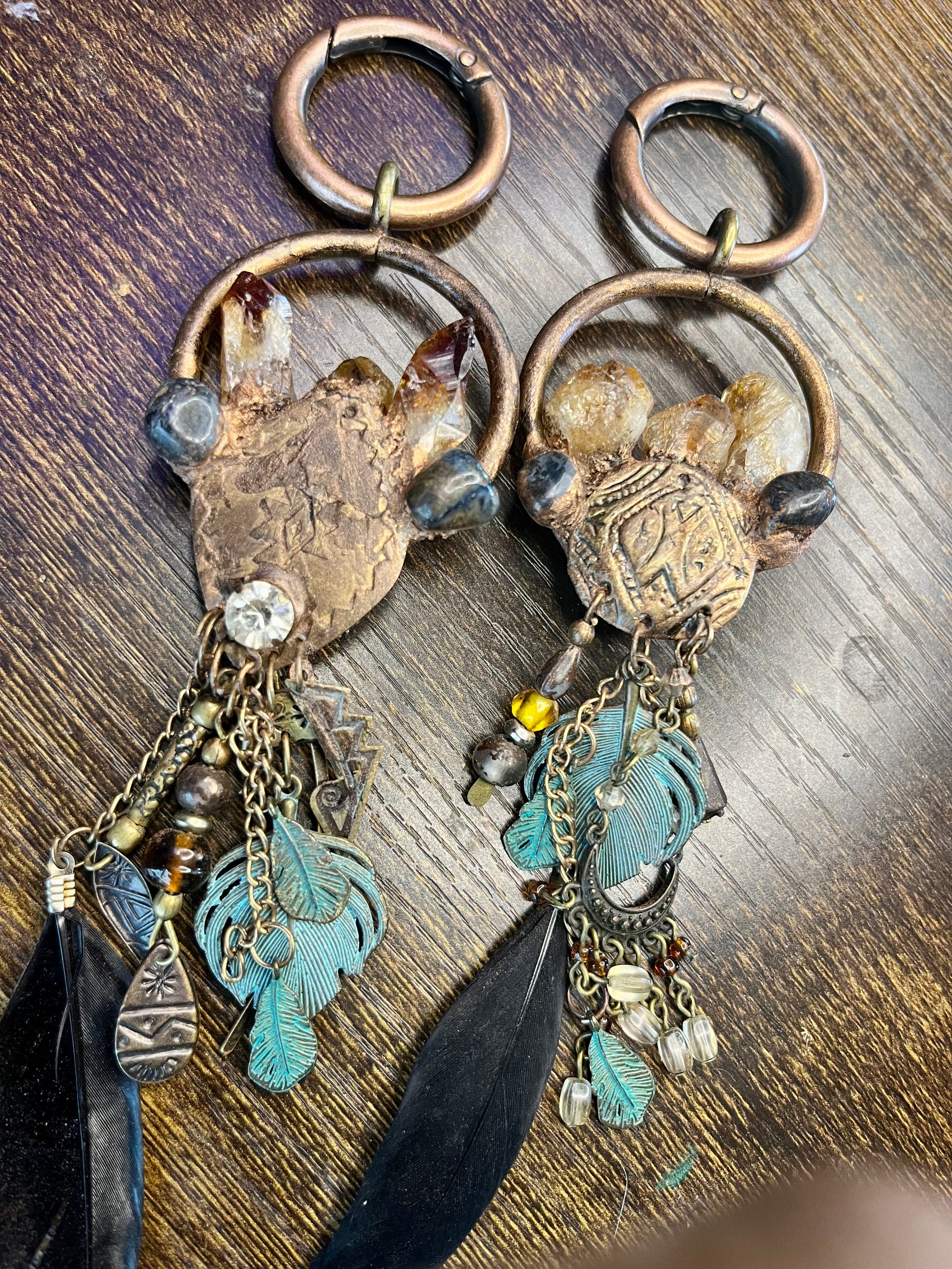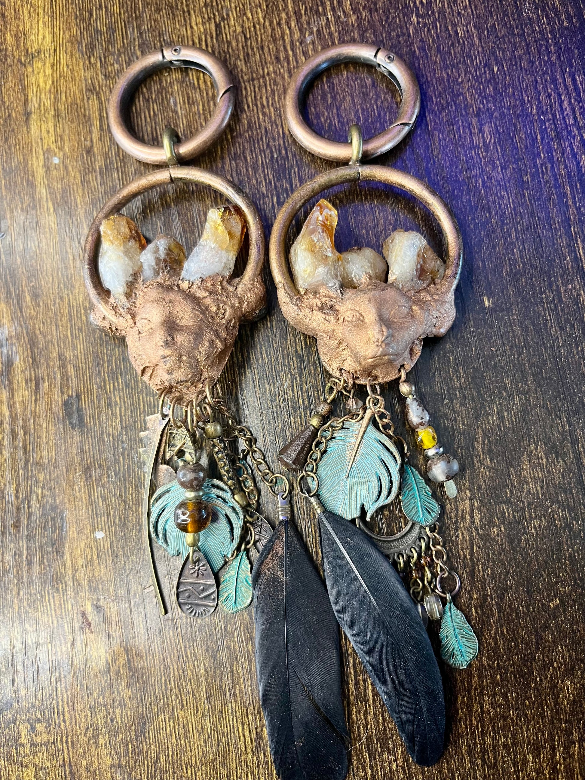 Introducing Imbedded, the one-of-a-kind earweights that combine vintage style with ethnic design. These weights feature striking black Arfvedsonite crystals and citrine points for a truly unique look. Enhance your ear stretching experience with Imbedded.