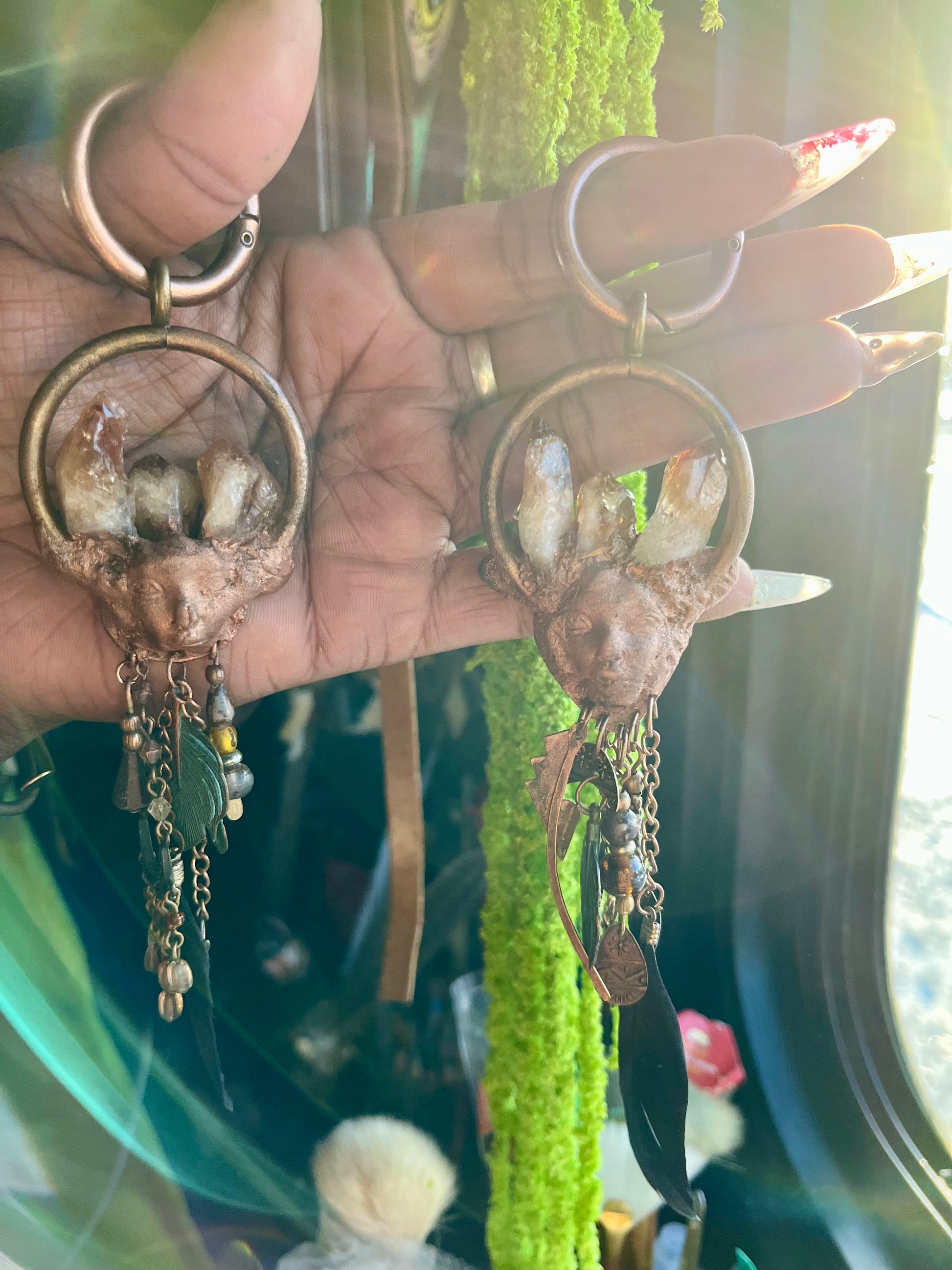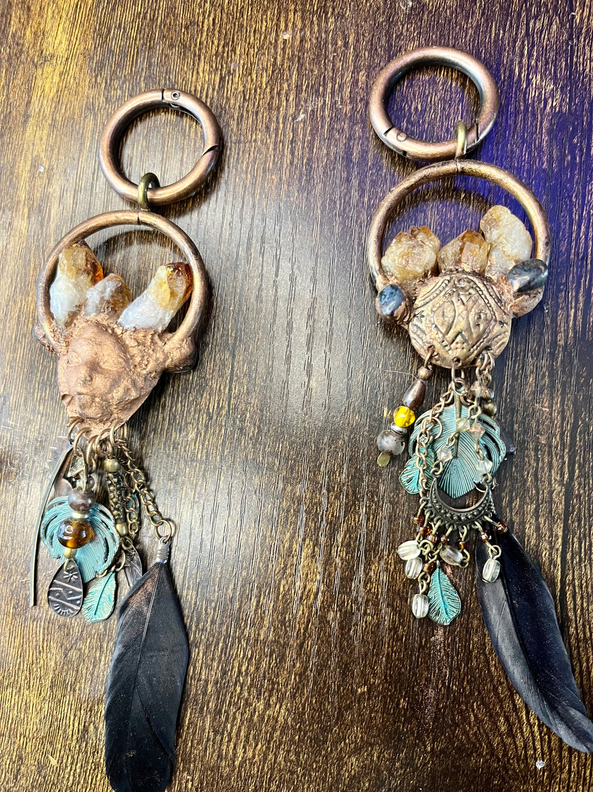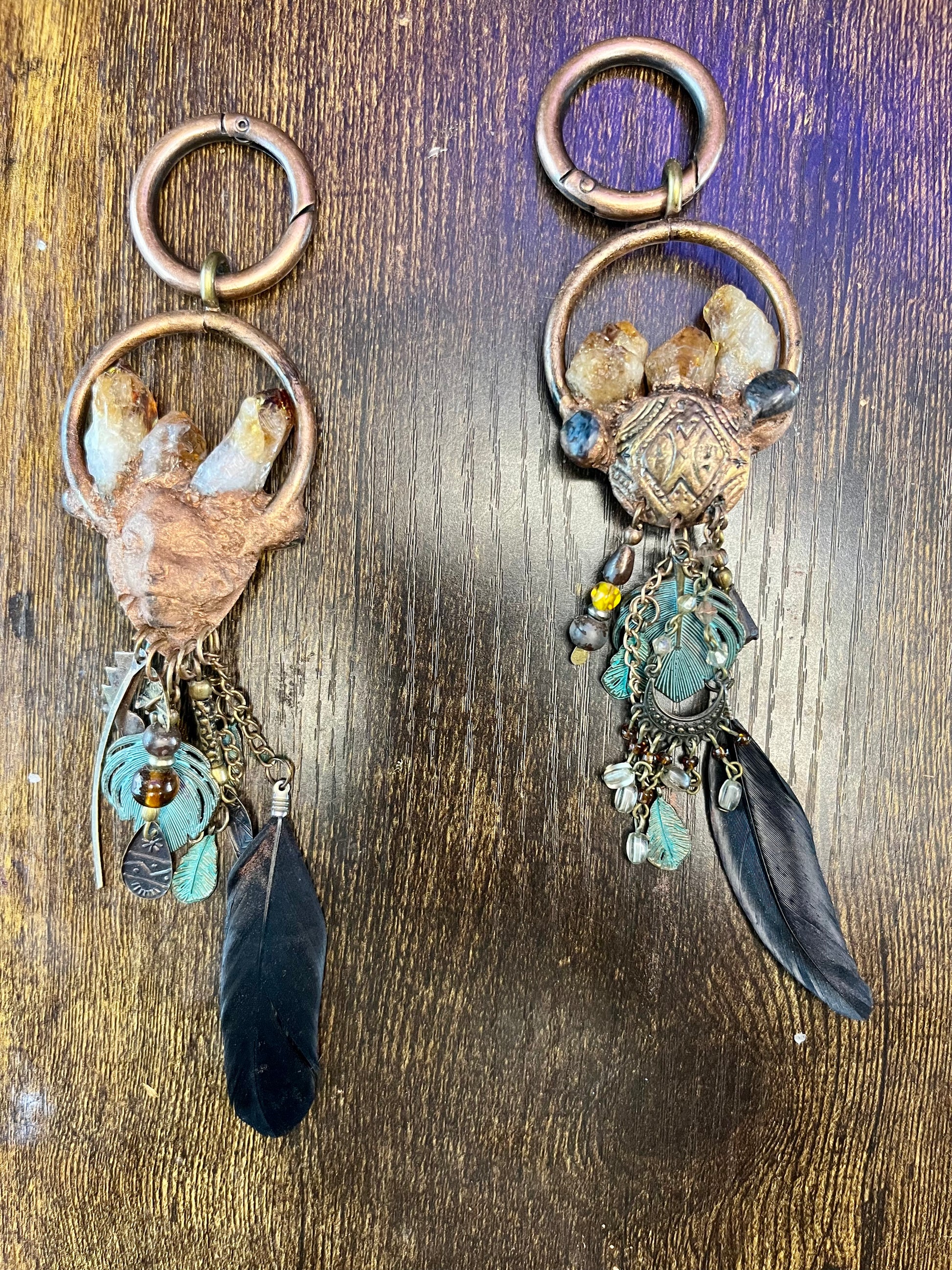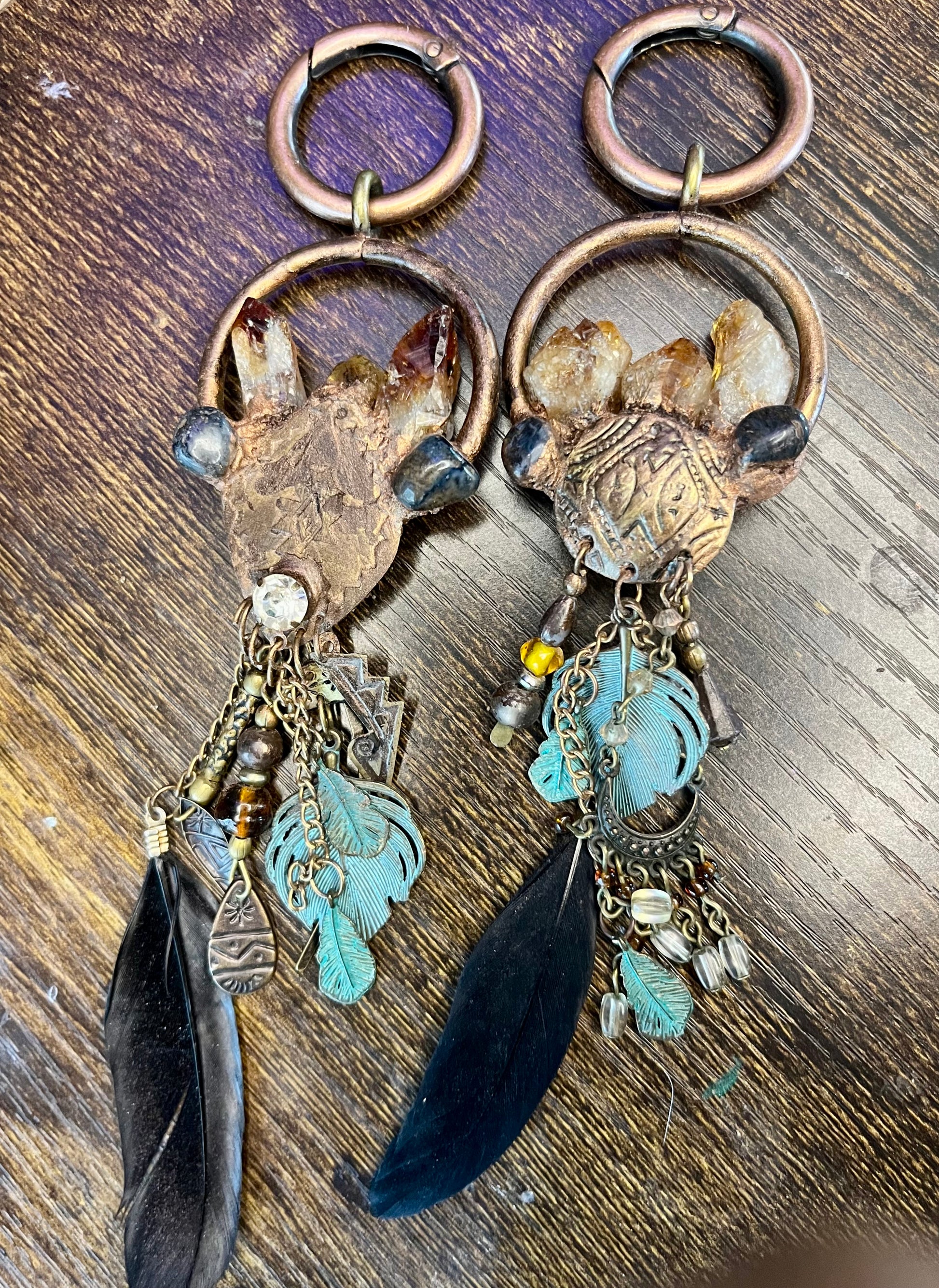 Introducing Imbedded, the one-of-a-kind earweights that combine vintage style with ethnic design. These weights feature striking black Arfvedsonite crystals and citrine points for a truly unique look. Enhance your ear stretching experience with Imbedded.