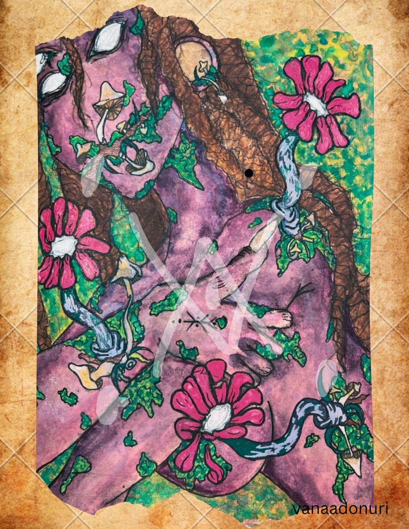 Discover the true essence of nature with Moss Mary. This Celestial drop of light is a heavenly creation, lost in the depths of the vibrant moss fields. Experience the magical wold of with this print.