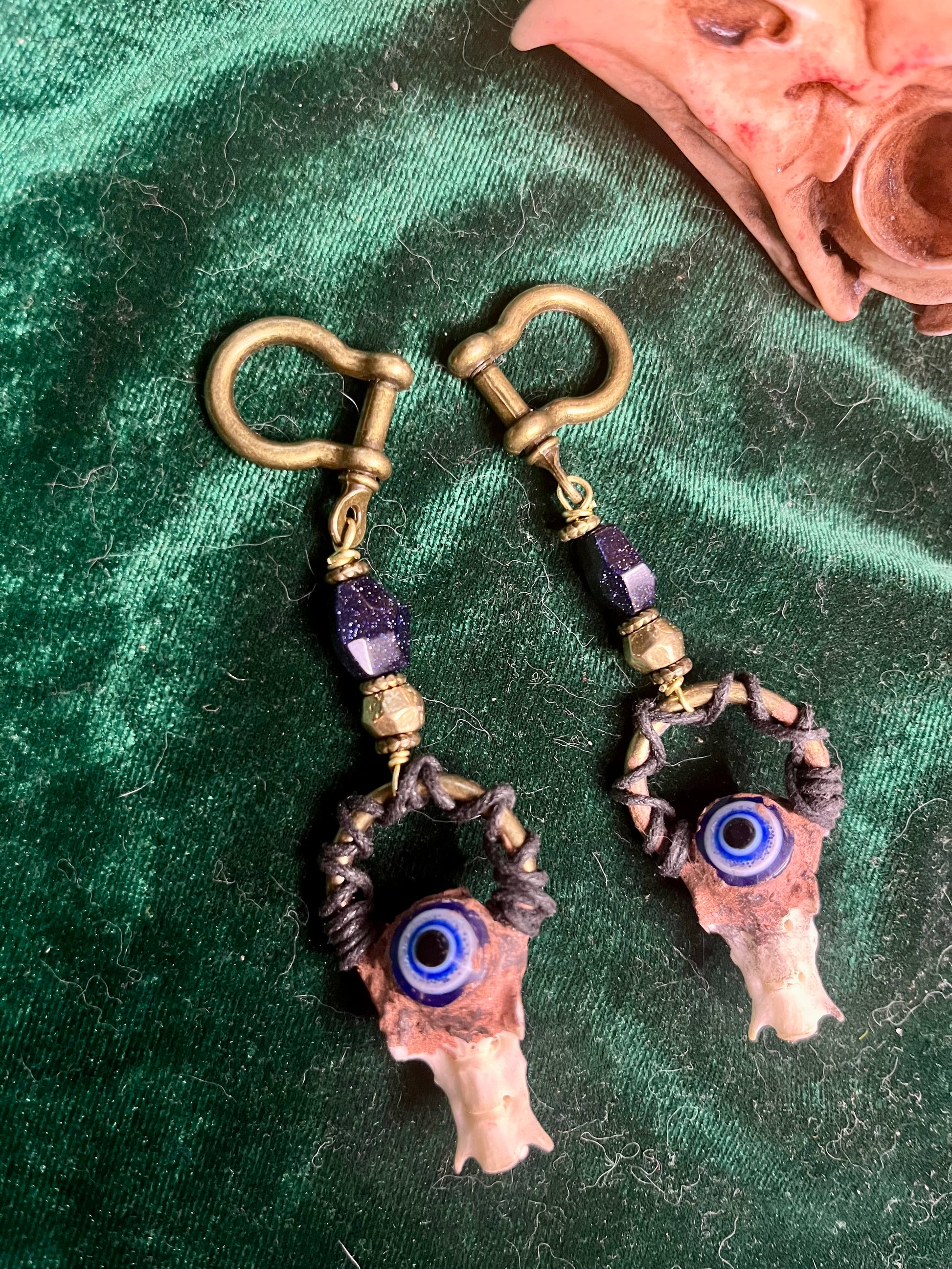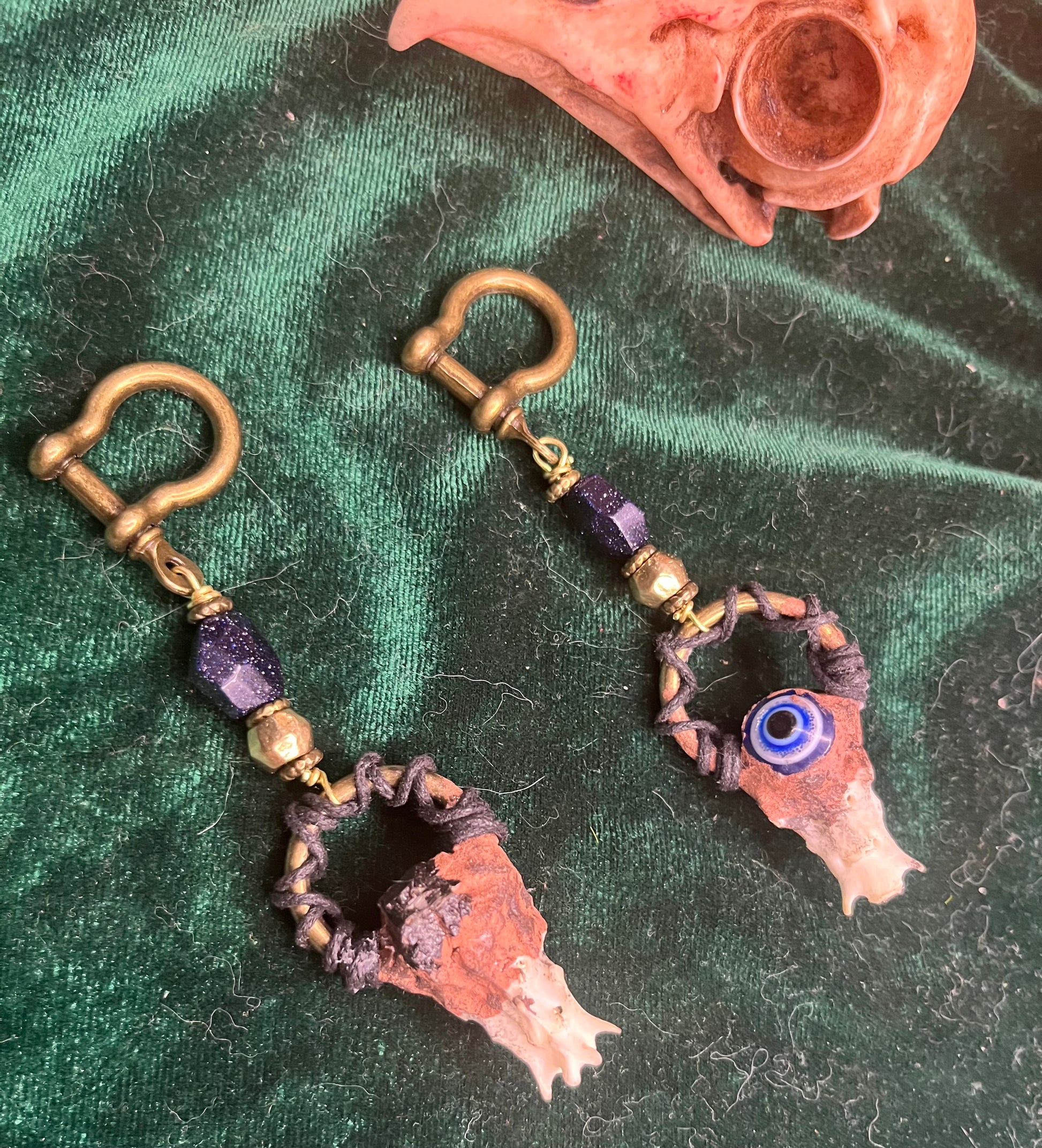 Shield yourself with the power of Protection. Made with a simple bone for unmatched strength, this eat weight set features an eye that returns evil. Adorned with brass and blue Gold stone, this item exudes both power and resilience. Perfect for those seeking ultimate protection in any situation.