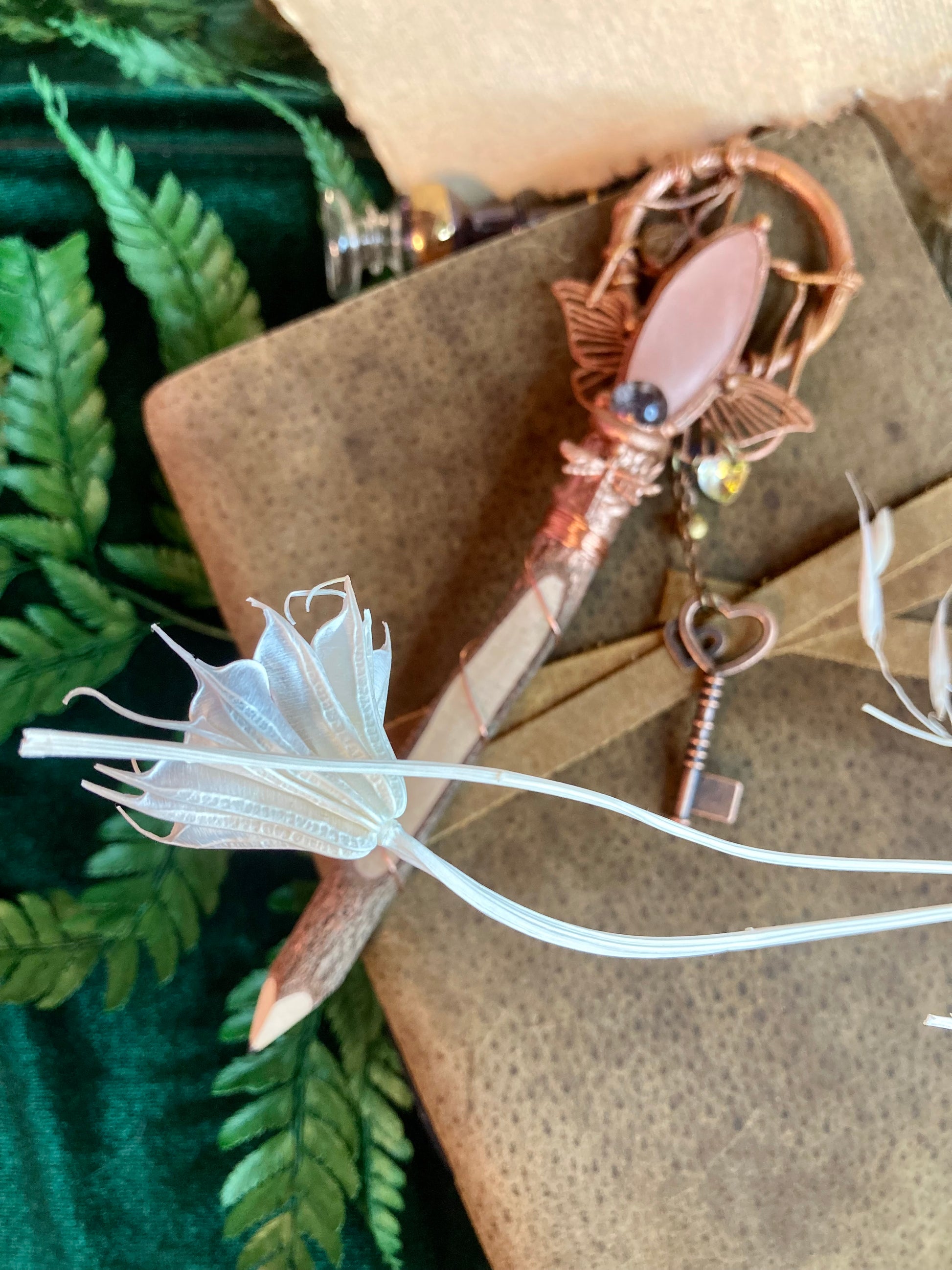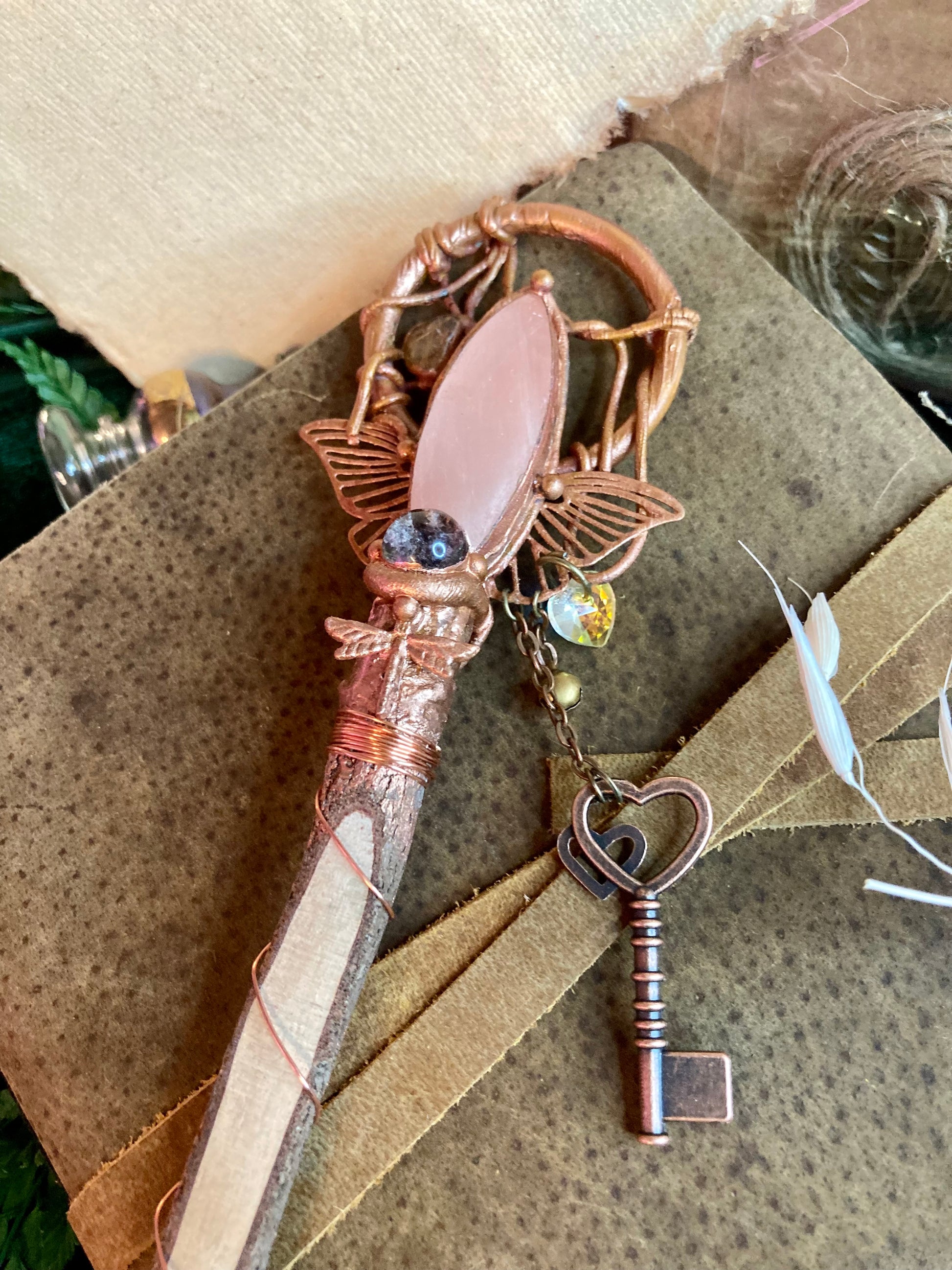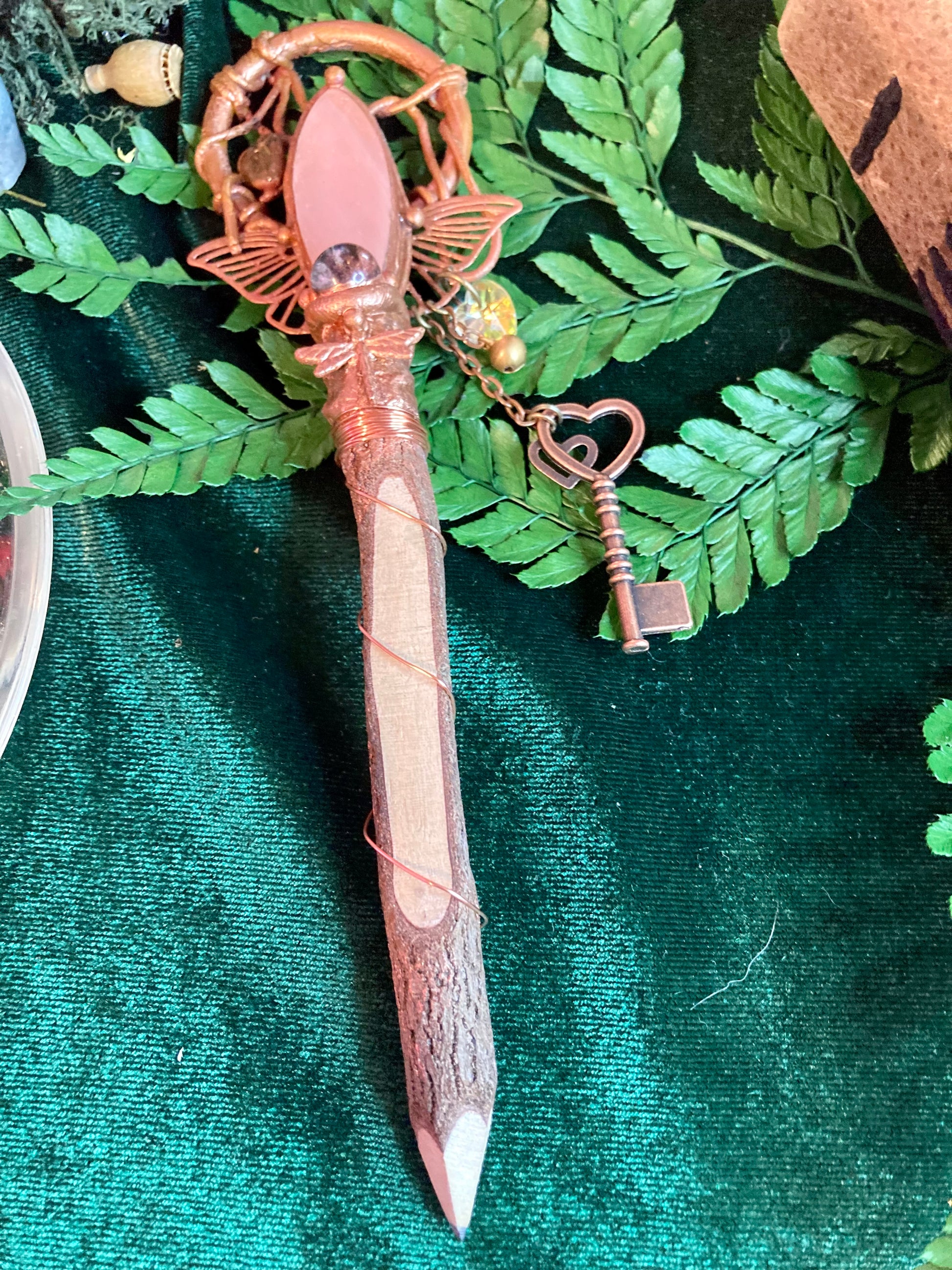 Transform your writing and artwork into magical creations with the Pencil wand. These unique and one-of-a-kind pencils not only write with precision, but also double as beautiful copper plated pendants. Use them in your journal or sketchbook for a touch of authentic elegance and inspiration.
