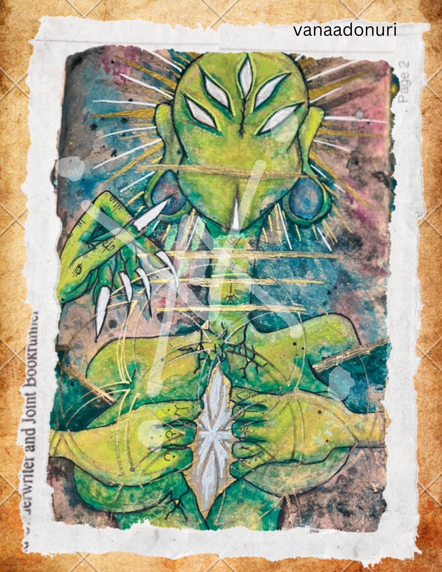 Elevate your space with a one-of-a-kind embellished print, Torn from the Halls of a Celestial old Book. Each 8x10 print is enhanced and protected, adding a unique touch to your home decor. Transform your space with this stunning piece.